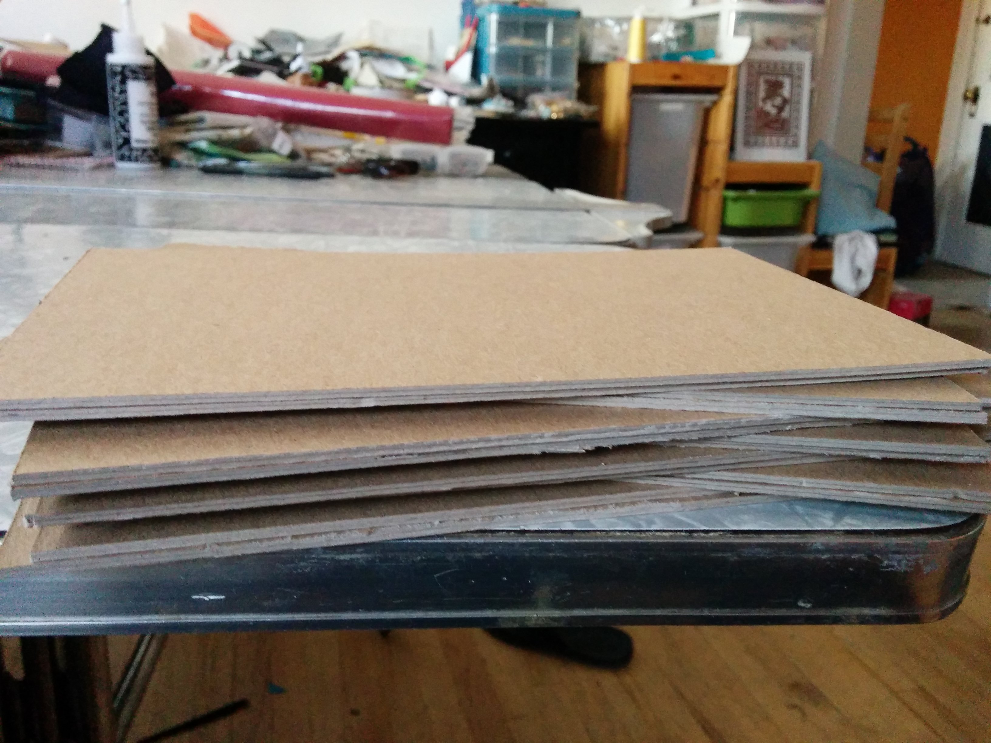 Here you can see the first stack of cut cover boards. The books I make have two primary portions, the text block and the cover assembly. Since all these books are going to be the same, I can make a stack of prepared covers ahead of time. I’ll prepare twenty cover assemblies, cover them with the decorative paper seen above, so that when the manuscript is ready and printed, all I have to do is make the text blocks. After that, each one will be put together before being signed and consecrated in a special ritual.